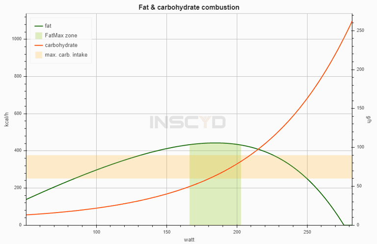 The data can be further utilised to adapt your nutrition plan for training and racing by understanding how much carbs you burn for given intensities and thus how much you need to consume per hour, allowing for internally stored glycogen