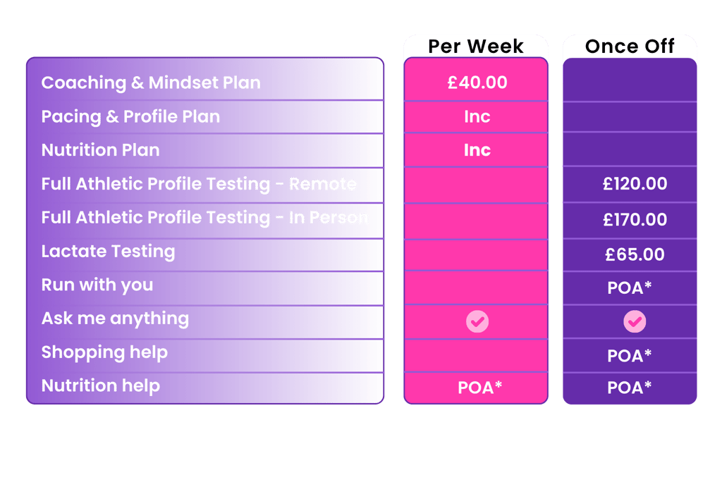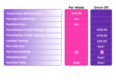 Coaching is per week and can be cancelled at any time. No notice or cancellation periods. I'm keen to work with you and progress your marathon journey as long as it works for you.